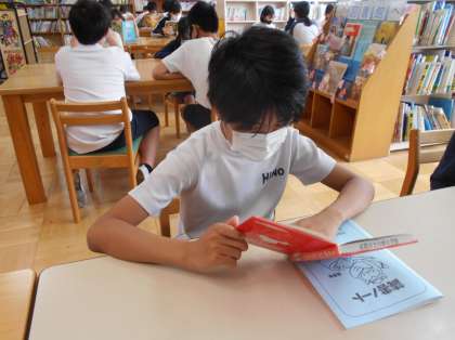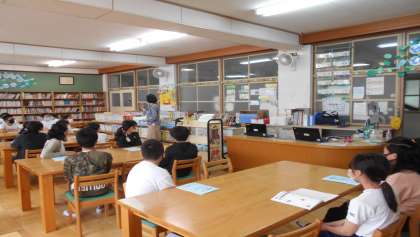 学校図書の先生より学校図書館の利用方法や読書ノートの書き方について教えていただきました。
