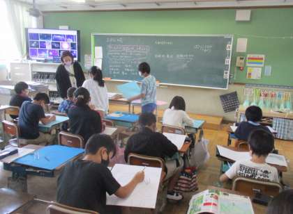 図工の時間,想像を広げて「まぼろしの花」を考えていました。みんなが知らない見たことのない花を想像してアイデアスケッチに描いていました。一人一人の個性が出ていて,完成がとても楽しみです。