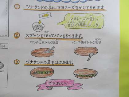 こどもたちは,喜んでツナサンドを作って食べていました。