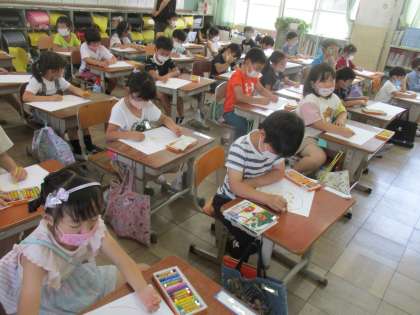 顔の部分一つ一つを確認しながら,ていねいに描き進めていました。