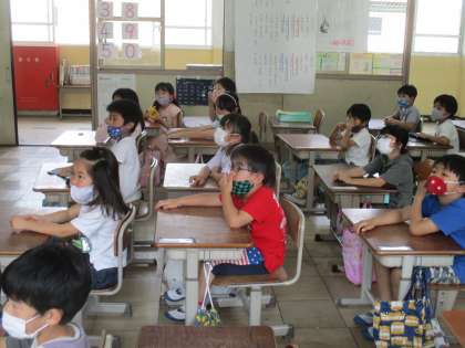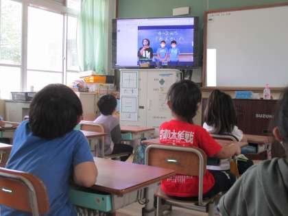 1年生をむかえる会が集会形式でできなかったので,2年生以上から1年生に,お祝い動画が届きました。とても楽しそうに見ている1年生の様子を2年生以上の子どもたちに直接見せたかったです。