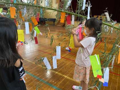 委員会で企画してくれた,七夕企画に学年みんなで行きました。委員会のお兄さん・お姉さんが色々手助けしてくれてとても頼もしかったです。本当にありがとう!