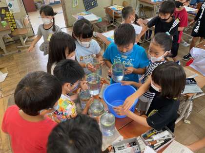 かさの学習が始まりました。子どもたちは初めての学習に意欲的に進めていました。1リットルがどれくらいかを考えることができました。