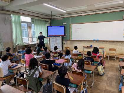 ALTの先生と楽しく外国語に親しみました。今回でALTの先生とは最後になります。最後も楽しい雰囲気で終わることができました。