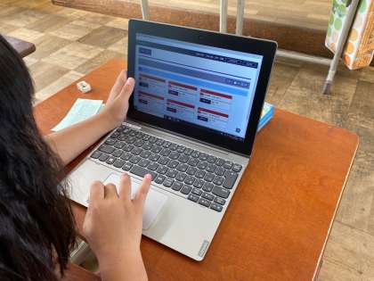 本日もミライシードを活用して学習の定着を確認しました。パワーアップドリルはかなり発展的な内容で苦戦していました。何度も楽しそうに学習している様子でした。