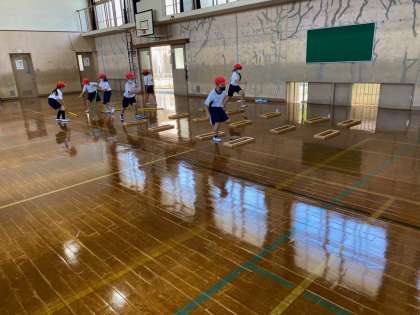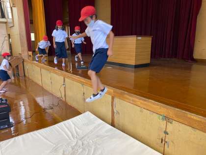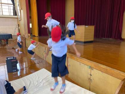 色々なとび方であそびました。それぞれ一生懸命行っていました。