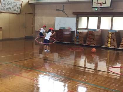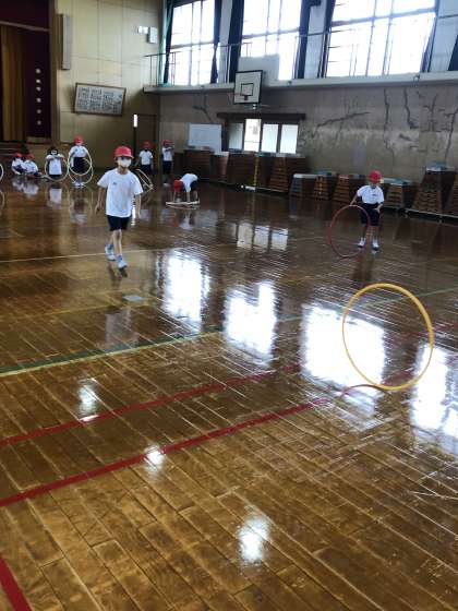 フラフープは,転がしたり,腰や腕で回したり,なわとびにしてみたり・・・