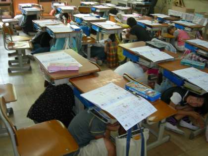 地震の後火災が発生したとの設定で避難訓練をしました。