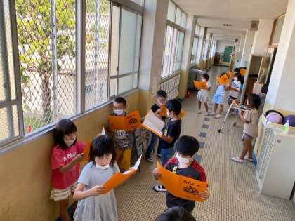 九九の5の段を覚え始めました。色々な場所にいって何度も暗唱していました。上がり九九や下がり九九など色々覚えましょう。帰りに九九が聞こえてきている雰囲気が良かったです。