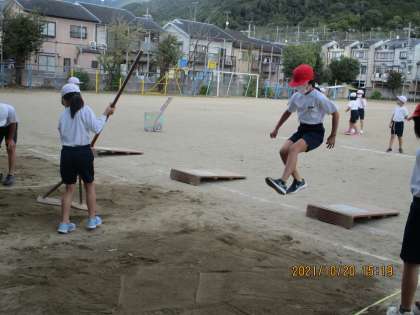 「片足で踏み切り,両足で着地」がはじめはなかなかうまくいきませんでしたが,だんだんと形ができるようになり,助走や跳ぶ時の姿勢,腕の使い方などにも注目できるようになってきました。