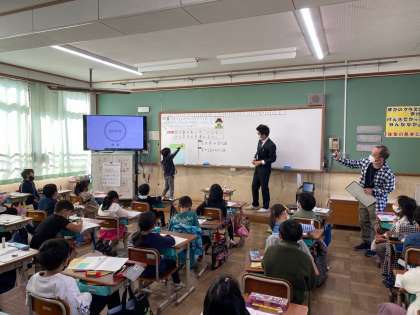 算数では,折り紙を使って問題を整理しました。たくさんの先生が見に来ていただいて子どもたちも緊張した様子で授業に取り組んでいました。頑張りました。