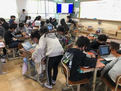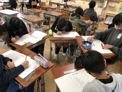それぞれの係の仕事内容についての説明の後は,しおり制作です。見学先のことを調べてまとめたり,しおりに載せる絵を描いたり,それぞれの係ごとに役割分担をして進めています。