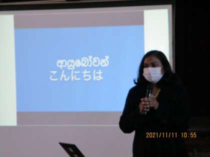 まずは,スリランカの言葉でご挨拶。「こんにちは」は「アーユーボーフン」というのだそうです。両手を合わせてみんなで言ってみました。「アーユーボーフン!」