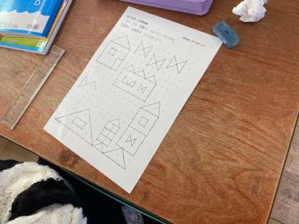 新単元に入りました。動物たちを線で囲んで仲間分けしていきました。三角形と四角形という用語を学びました。時間があったのでたくさんの三角形と四角形を作りました。定規を使って直線を書くことを意識しましょう。