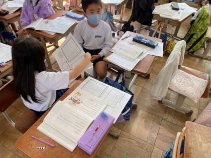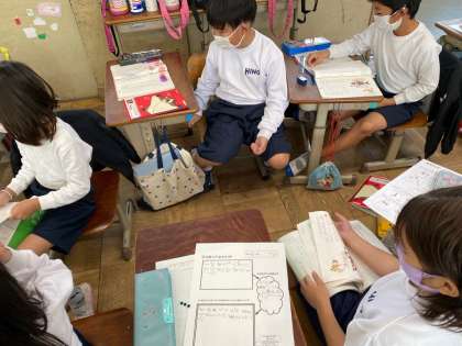 自分の心に残った場面にシールで貼って隣の人と交流しました。選んだところがそれぞれ違って発見がありました。