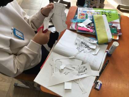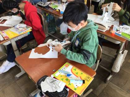 社会科では日本の工業について学習しています。今回から日本の工業の中でもトップクラスの生産額を誇る自動車について学習していきます。まずは自動車について詳しくならないと・・・。ということで自動車をペーパークラフトで作ってみました!紙でも作るのは難しくみんな悪戦苦闘していました。