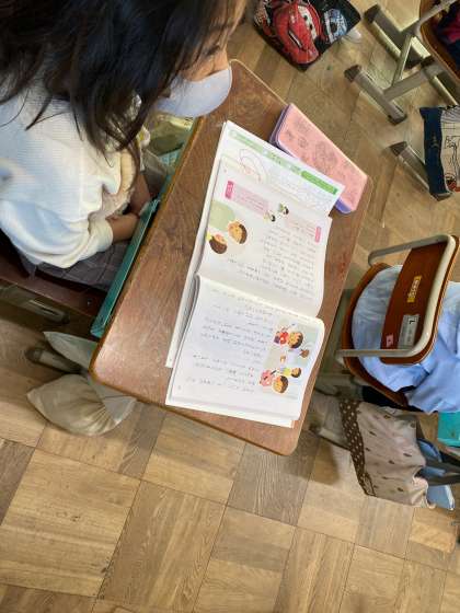 お話を読んで自分のいいところを考えていました。たくさんいいところを見つけてほしいと思います。