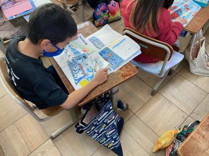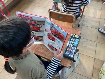 1組ではほかの自動車の本を読んでオリジナル図鑑に向けて色々な本を選んでいました。