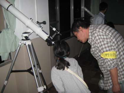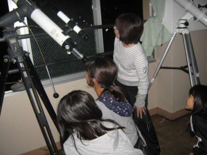 10月6日(木)7日(金)の2日間,4〜6年の児童・保護者を対象に,18時30分より「月の観察会」を行いました。はじめに,岡本先生から月や星の不思議について映像を交えて話がありました。その後,天体望遠鏡を使って,実際に観察しました。望遠鏡で見る月は,とても明るく,クレーターもしっかり見ることができ,感動の声が上がっていました。