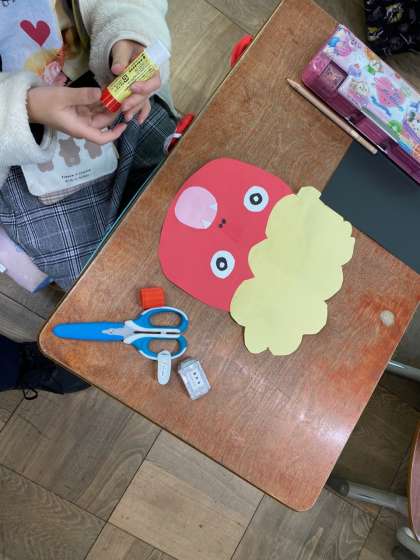 紙版画では鬼の作成を進めています。どこに貼ったか分かるように色を変えていました。いよいよすっていく作業が始まります。
