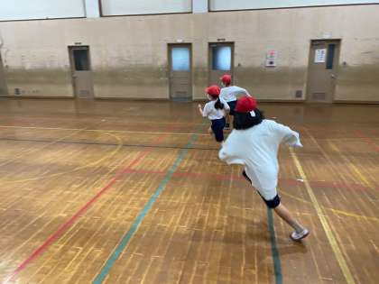 それぞれリーダーを決めてまねっこあそびをしました。体育館の中を一生懸命動いていました。