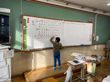 かける数が1ふえるとかけられる数はどうなるのかを調べていきました。九九を頑張ってきた2年生は,かなりスムーズに進みました。まだまだ続きます。