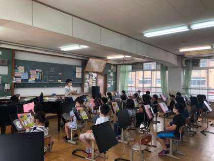 5年生の音楽は,スクールサポーターの先生と一緒に学習を行います。新たな先生との出会いにわくわくしている様子もうかがえました。