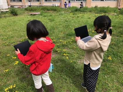 生活科の学習で,春見つけをしました。中庭には,春を感じられる植物や生物がたくさん!見つけた“春”をタブレットを使って写真をとりました。友だちがどんな“春”を見つけているか交流が楽しみですね。