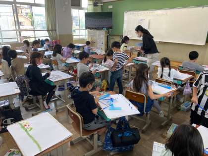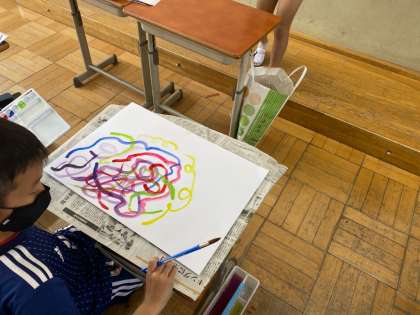 3年生になって初めての絵の具でしたが,使い方ばっちりで,水の量やふでの太さを変えながら楽しんで作業していました。
