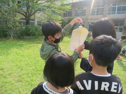 今日(4月19日)は,「晴れの日」の気温の変化を調べました。午前10時から午後3時まで1時間おきに観測しました。午前10時に20度だった気温が午後2時には,27度まで上がっていました。