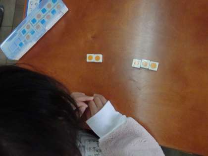 数と数字の学習をしました。数字の“5”はどういうことか,数図ブロックを使って表す学習をしました。また,5はいくつといくつに分けることができるのか,数図ブロックを使って考えました。たくさん考えを出すことができました。