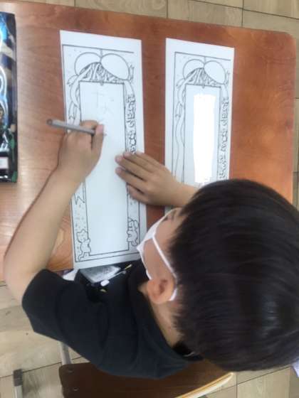 国語では,自分の名前を書きました。お手本を見ながら同じように書けるように,ゆっくり丁寧に書くことを意識して頑張りました。自分の名前は,これからずっと大事に書いていきたいですね。