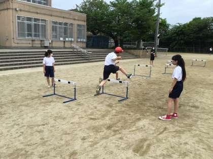 2時間目のハードル走。活動の流れが難しいですが,周りを見てよく動けていました。今日は「遠くから飛ぶ!」をめあてにタイムを測っていました!