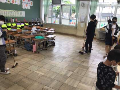 6年生は掃除時間にあおぞら教室や1年生の教室に行って掃除を代わりにしています!6年生として素晴らしい姿ですね。