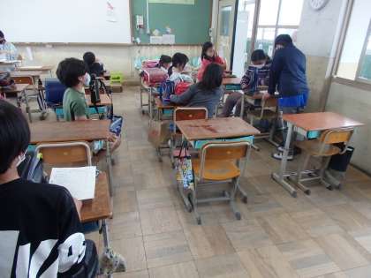 今年度初めての町別児童会がありました。6年生を中心に,安全に集団登校ができているかをふりかえりました。地域委員さんからのお話もいただきながら,地域の安全についてもふりかえることができました。今日の町別児童会で出た意見をもとに,帰りは集団下校をしました。明日からも班でまとまって,安全に登校してきてください。