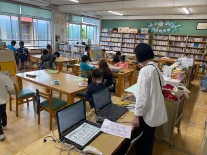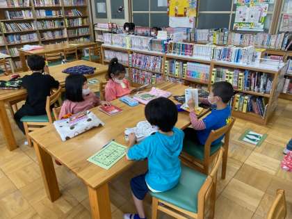 本の貸し出しがスタートしています。挨拶も丁寧にできて素敵でした。たくさんの本を読んでいきましょう。