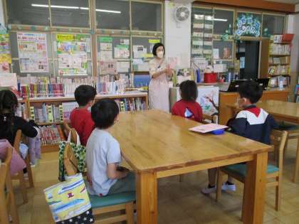 図書館司書の先生から,図書室での本の借り方や返し方を教えてもらいました。