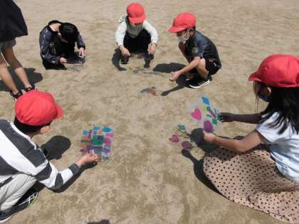 友だちの作品を重ねてみたり,自分の体や服,植物などにも影を映して,変化を楽しんでいる様子も見られました。