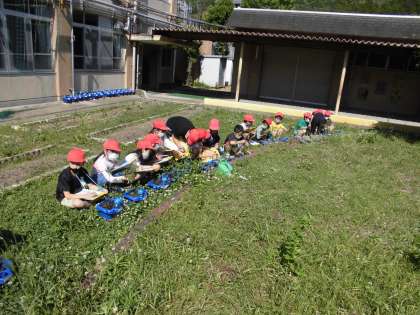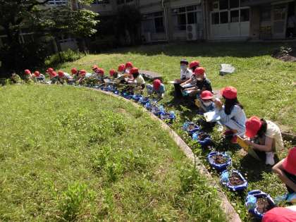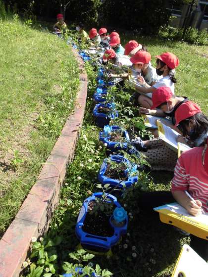 野菜を植えて,1週間が経ちました。今回は,ミニトマトを詳しく観察しました。