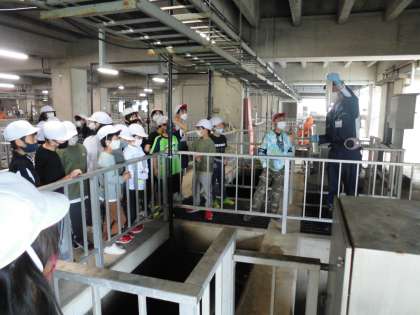 しばらくすると,きれいな水が上に茶色の泥が下にと分かれていました。沈んだ泥は,ほとんどを反応タンクに戻して,また水をきれいにするために働いてもらうそうです。