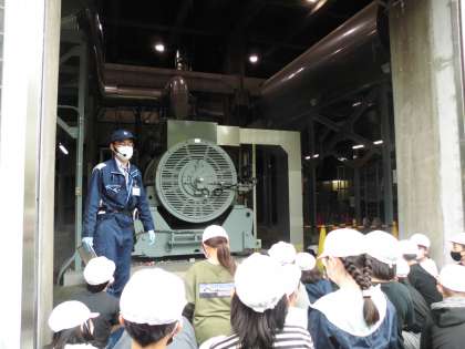 大きな発電機を見せていただきました。停電が起こった際にもセンターで発電し,下水処理のための機械を動かしています。
