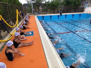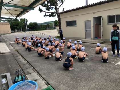 小学校生活はじめての水泳学習です!先生の話をよく聞いて,水泳学習の準備の仕方や,プールの使い方などを学ぶことができました。順番待ちをしているときも,前の列の人がどんなことをしているのかをよく見て説明も聞くことができたので,次の列の子どもたちはスムーズにに活動することができていました。これからもお話をよく聞いて,安全に楽しく水遊びをしていきましょう!