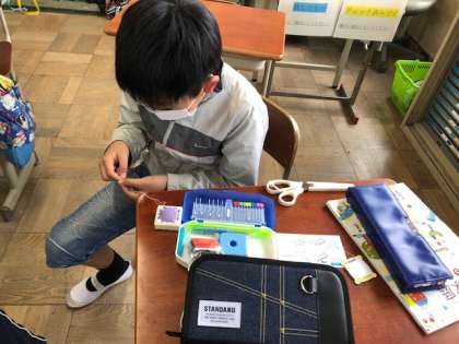 家庭科では,裁縫の学習が始まりました。初めての裁縫にドキドキしながらも,基本的な縫い方を知り,練習することができました。