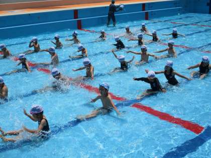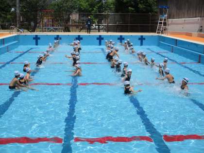 水の中に座って,手足をバシャバシャ動かしたり,お互いに水をかけあったりして,楽しく水遊びができました。