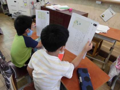 今回は,完成した文を友だちと読み合いました。