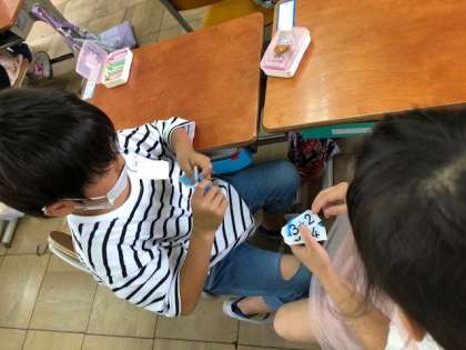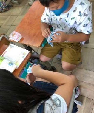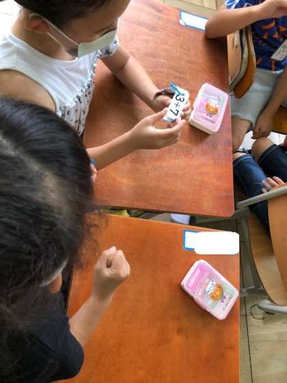たしざんカードを使って学習をしました。自分で取り組んだ後は,友達と問題を出し合いました。「全問正解できた!!」と自信をつけることができた子もいました。