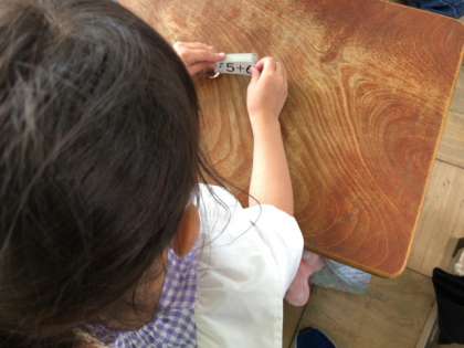 たしざんカードを使ってひとりひとり練習をしました。自分でどんどん問題を出して答えていく事ができていました。答えるスピードも少しずつ早くなってきています。たしざん名人目指してがんばれ!1年生!!