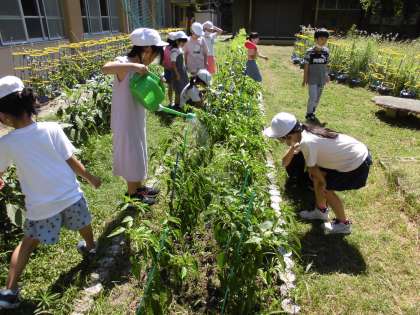 ピーマンと万願寺とうがらし、ナスをたくさん収穫することができました。ミニトマトは、十分すぎる太陽の光を浴びて、少しずつ赤くなってきました。