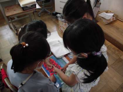 学活の時間には、夏休みの自由作品をみんなで鑑賞しました。すてきな作品がたくさんあって、意欲的に友だちに質問をしたり、感想を伝えたりすることができました。