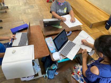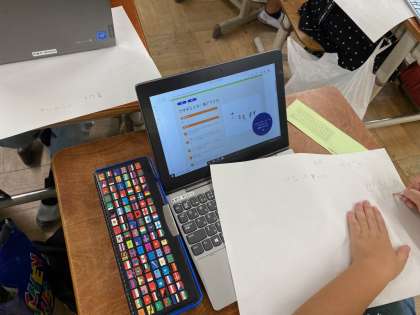総合的な学習では世界の遊びについて調べています。それぞれ国を選んでその国の色々な遊びを調べていました。
